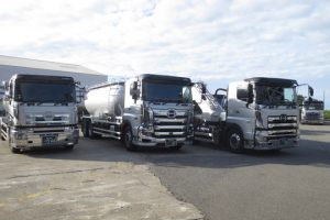 タンク車セミトレーラー 10台、タンク車専用トラック14台、ダンプ車1台 ウイングトラック 1 台、海上コンテナトラクター 2台 海上コンテナトレーラー4台、平ボディトラック 2 台、ユニック車9台 |